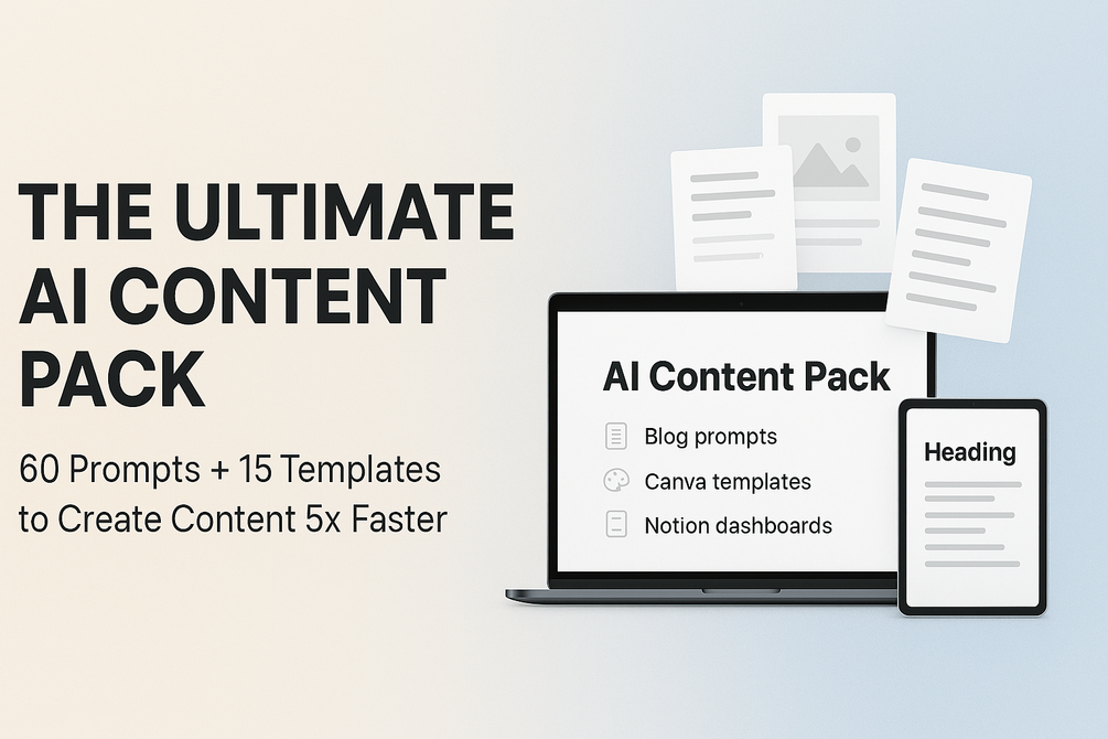 The Ultimate AI Content Pack gives you 60 ready-to-use prompts and 15 editable templates for Canva & Notion πŸ–ŒοΈπŸ—‚οΈ so you can create high-quality content in minutesβ€”not hours. ⚑